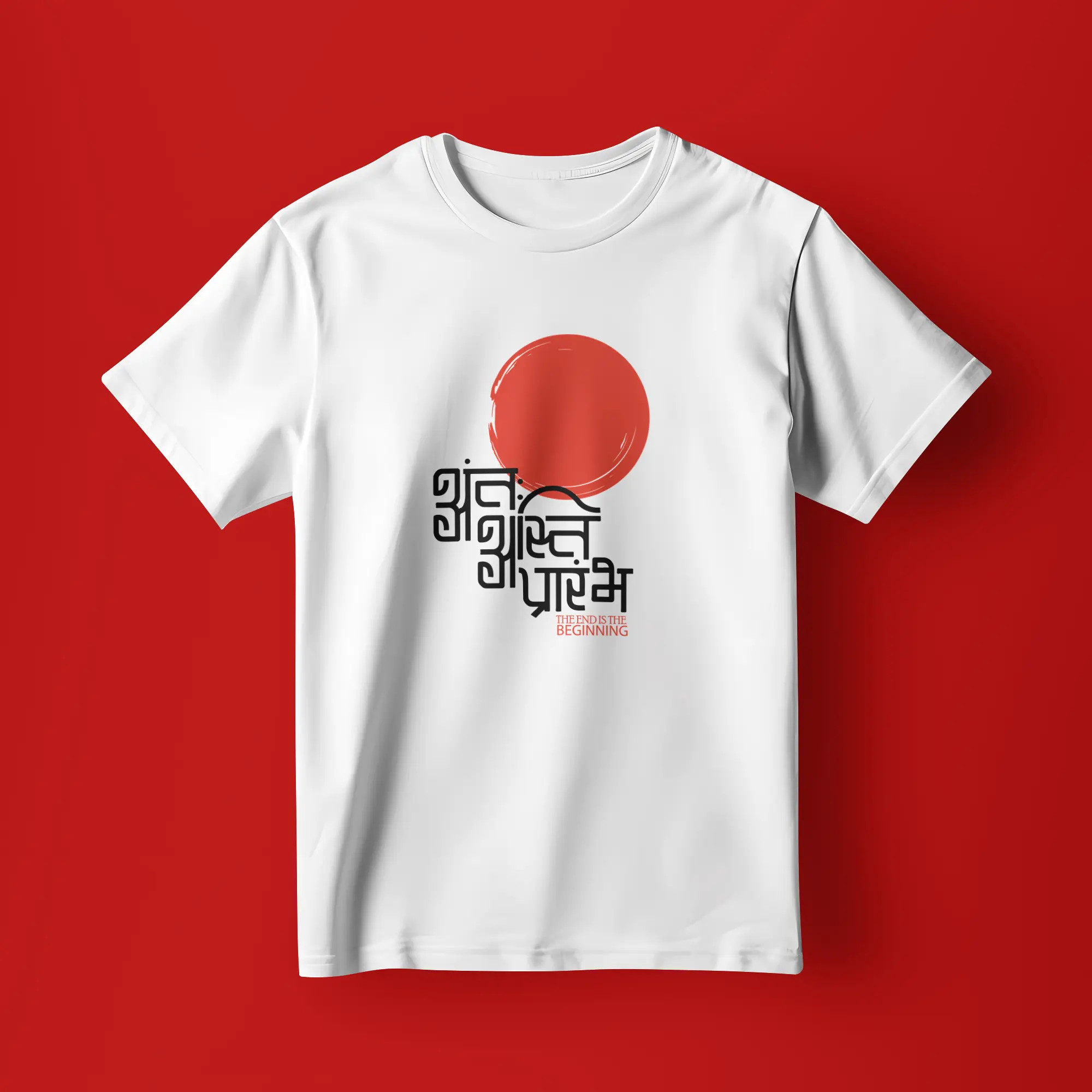 Reflect on life’s journey with our ‘अंतः अस्ति प्रारंभ’ T-shirt. This A4 design is a daily reminder to find strength in endings and embrace the possibilities of new beginnings. A comfortable, stylish tee with a profound message.