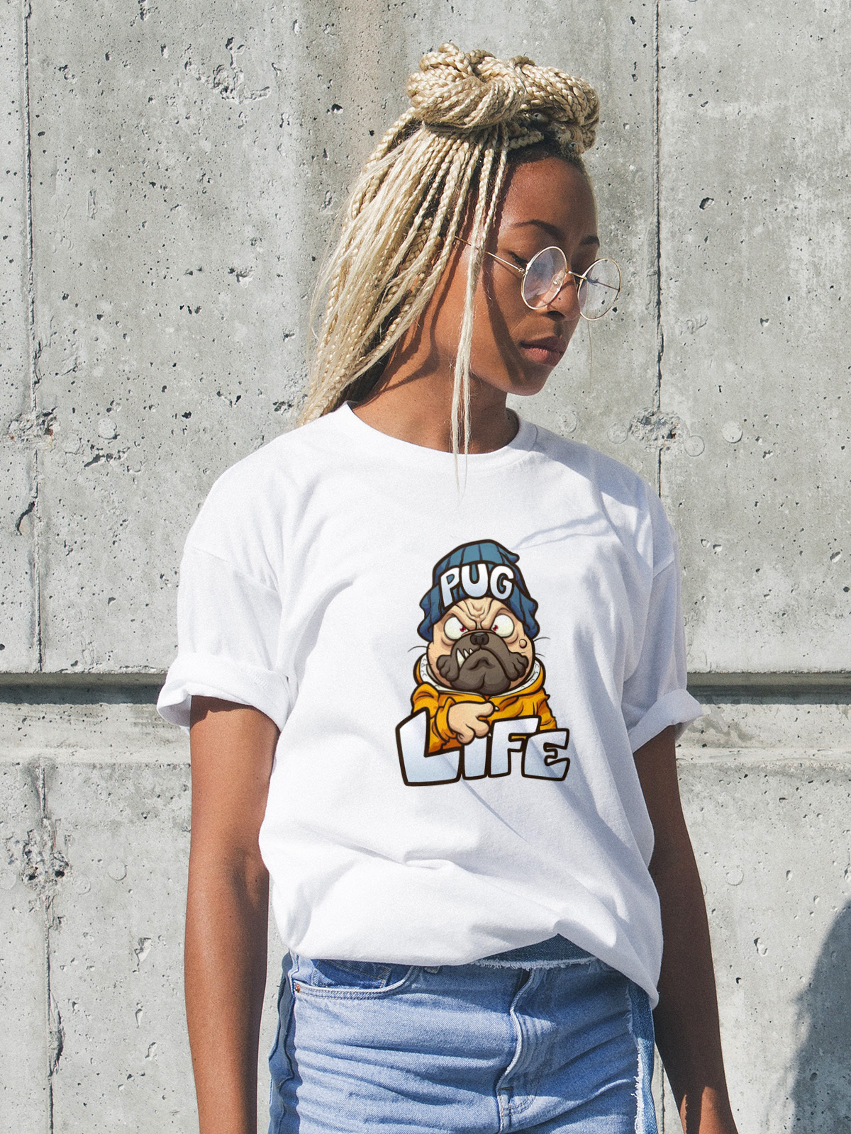 Embrace the snorts, the snores, and the endless cuteness with this “Pug Life” t-shirt, designed for true pug aficionados. Celebrate the quirky charm of these wrinkly companions, their love for naps and snacks, and their ability to brighten any day. This tee, made from soft, comfortable Cotton Fabric, is a declaration of your devotion to the pug life philosophy: finding joy in the simple things, embracing imperfections, and always being ready for a cuddle. Show the world your pug love with this must-have addition to any pug lover’s wardrobe.